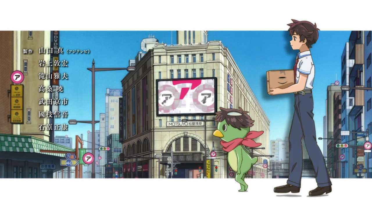 So how does Sarazanmai fare? Both better and worse depending on how you look at it. Those unfamiliar with the kappa lore are certainly going to be shocked at the show’s shirikodama extractions. But there’s a strong comedic sense to Sarazanmai that makes these scenes downright hilarious. Sarazanmai is a funny show, and the slick, bright visuals help offset the weirdness that might be off-putting to some viewers. Setting the show in real life Asakusa in Tokyo (mixed in with some creative liberties here and there) makes for a visually stunning show. Nowhere is this more evident than in the ending sequence, where the characters are juxtaposed against real life footage of the district. This might just be Ikuhara’s best-looking show yet.
