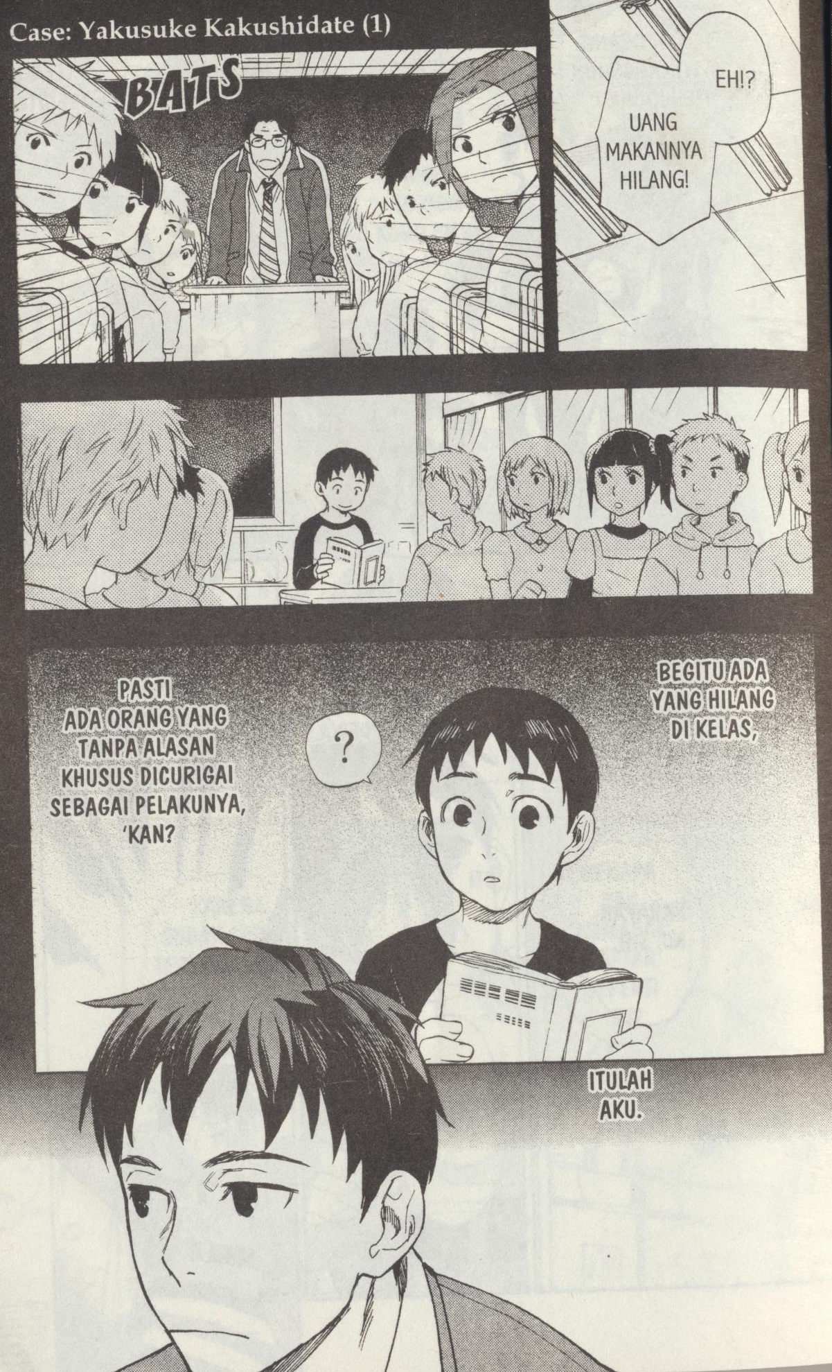 Although Kyoko Okitegami is the main detective of this manga, the story itself is mainly told from the perspective of Yakusuke Kakushidate, an unfortunate young man who is often involved as a suspect in mysterious cases. In those cases, Yakusuke (who can be considered as “Watson” in this story), always seek the help of Kyoko, a detective who he is romantically interested with, to cear his name. Together they solve many cases, even though Kyoko would always end up forgetting Yakusuke and their relationship.