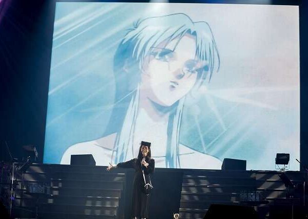 Following that, she performed “Tenshi no Enogu” accompanied by footage from the OVA Flash Back 2012. As she performed each song, the screens showed a mix of footage from the series and illustrations of Minmay by Haruhiko Mikimoto to great effect. Nowhere is this more impactful as she began to sing “Ai Oboete Imasu ka“ to the footage of the film. Fans certainly remembered love, as Mari Iijima’s beautiful performance and the footage shown on screen blurred the lines between 2D and 3D. It was truly as if Minmay had leaped from the screen herself to perform on stage.