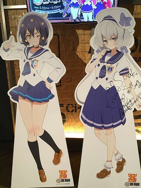 Inside, you’re greeted by various cute cutouts of the girls of Franchouchou, both in their “normal” and “zombie” versions. Which table you’re assigned to is determined by which badge you get. I got Yugiri, so I got to dine with a small cutout of her to accompany me.