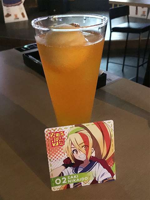 Visitors are required to at least order one item from the menu, and my order came as the radio started to air. There were drinks on the menu representing each member of Franchouchou, and each came with one of three collectible coasters of each girl. I went with the “No.2 • Legendary Orange Soda” which was a nice and refreshing orange float.