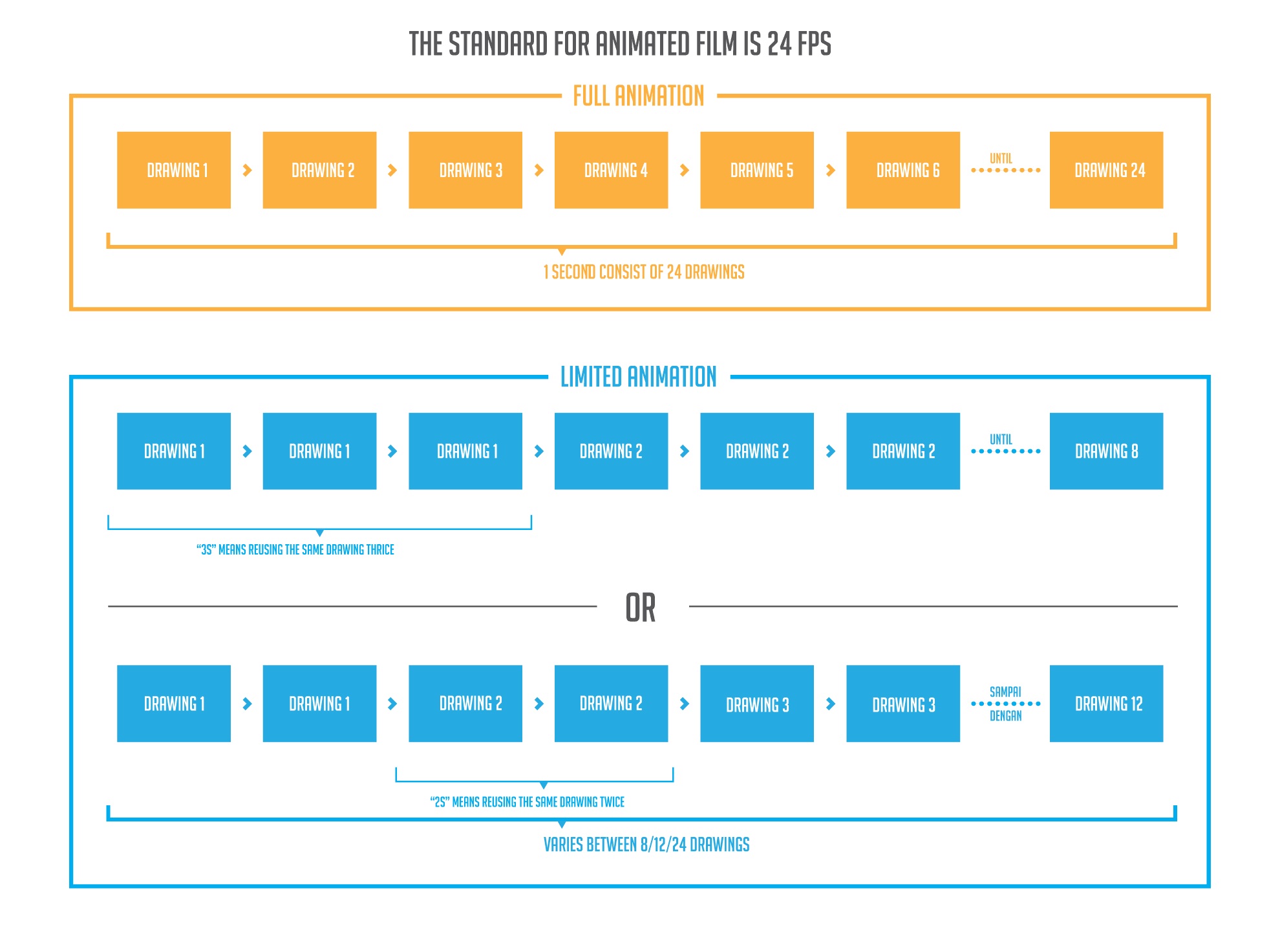 For the second key point, let’s take some look at history. Japan’s anime industry was initially dominated by Toei Doga—prior to becoming Toei Animation. Perhaps not everyone knows that Toei Doga was heavily influenced by Disney in the 60s to 70s and tried to make animation with the same visuals and feel as Disney’s animated movies. By trying to compete with Disney, Toei aims to spread Japan’s culture worldwide. To that end, Toei adopted the same kind of animation used by Disney—full animation. Full animation is a process where animation is made in the frame rate of 24 fps (frame rate per second); meaning using 24 different pictures for one second of animation.