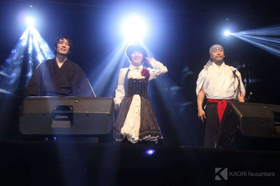 In the middle of KAMUI’s act, Mika, once again, surprised the audiences. This time she went upstage and accompanied master Shimaguchi’s sword choreography with her elegant solo keyboard. Their collaboration successfully amused the audiences. This time, audiences were giving them even more applause