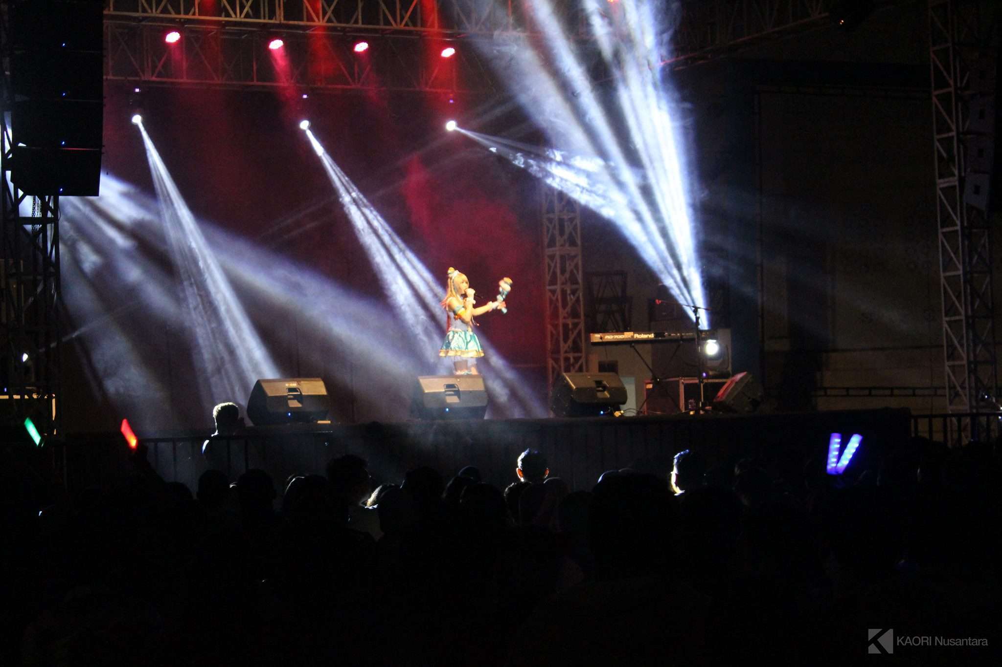 In the Wonder Stage, the concert started at 18.00 WIT by with performance from Aqua Nanami. The cute coplayer delivered some fan-favorite anisongs like the ending song of One Punch Man, Hoshi yori Saki ni Mitsukete Ageru, and Minori Chihara’s Kyoukai no Kanata, which is the opening song of an anime with the same name. Even though originally she is not a singer, but she successfully opened that concert. Some spectators who knew those songs sang along with her. Some spectators also passionately chanted “Oi..Oi..Oi” together, rousing the atmosphere.