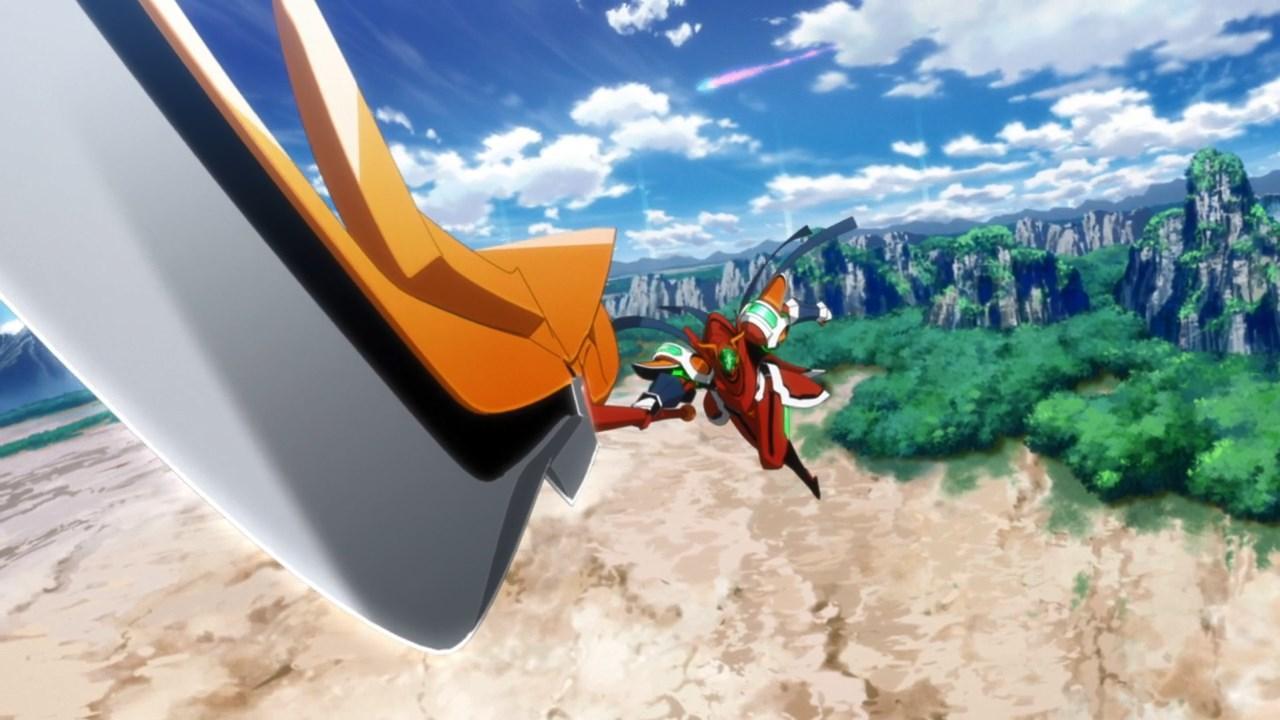 Of course, mecha shows wouldn’t be complete without the mecha themselves, and the show’s robots, called the Briheight, both look and move great. By equipping special armbands, the user can transform themselves into a Briheight, with forms and abilities reflecting their personal convictions. This is already shown to manifest in a couple of different ways in the first episode, which makes for an interesting concept that I’m only excited to see going forward as we learn more about the world and its characters. Not only that, but all the Briheight so far seem to lean to utilizing close combat. It’s a great setup for exciting action-packed battles, like how Back Arrow’s Briheight Muga attacks using a flurry of punches and kicks, moving smoothly by the excellent use of 3DCG.
