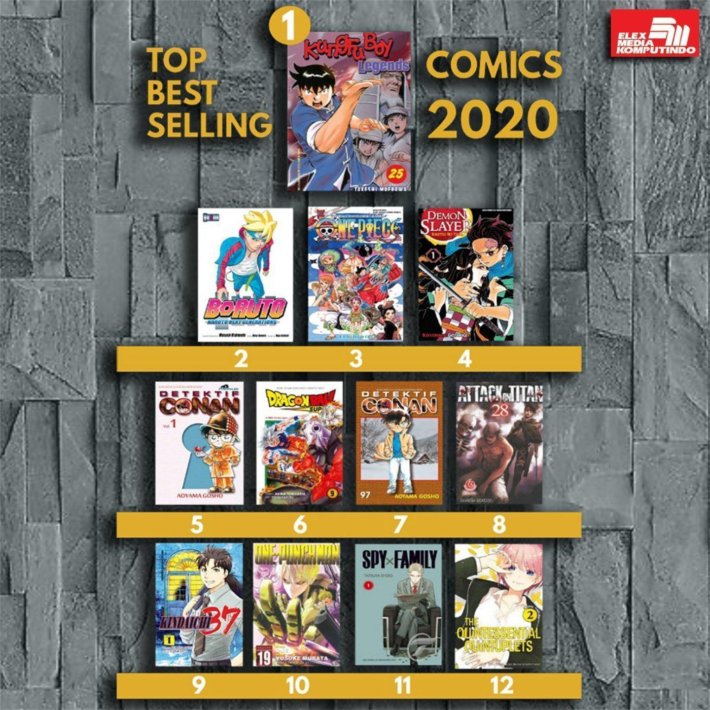 On 1 Januari 2021, Indonesian publisher Elex Media Komputindo has announced the list of their best selling comics in 2020. Unlike the previous two years when the top position was taken by Gosho Aoyama’s Detective Conan, taking the top spot this year is the 25th volume of Takeshi Maekawa‘s Kung Fu Boy Legends (Tekken Chinmi Legends).