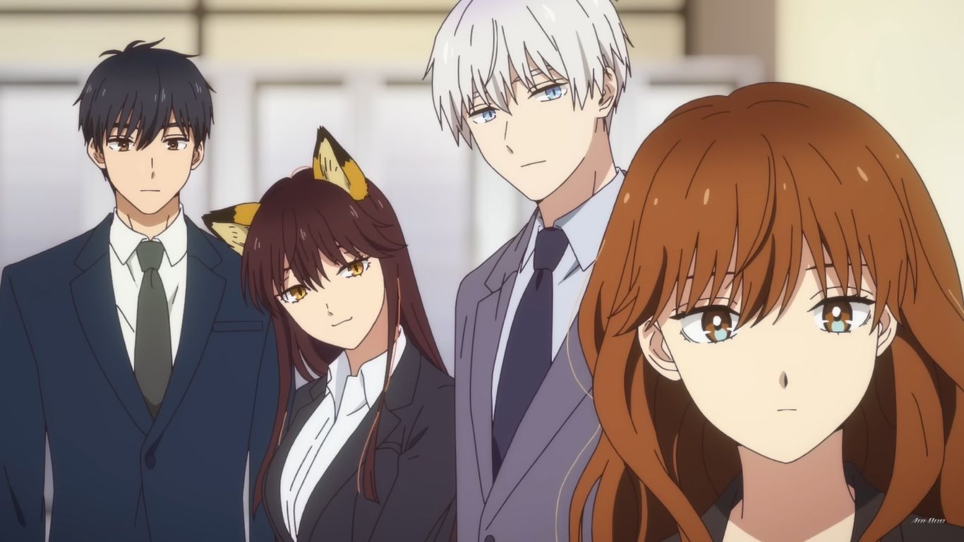 Diving into the first episode of The Ice Guy and His Cool Female Colleague, the series introduced a couple of characters and how they interact in a somehow repetitive way. To sum it up, Himuro was always troubled because of his traits as a yuki-onna descendant and Fuyutsuki will offer her help in a way that her solutions become a bridge between Himuro’s conditions and the things he wants to do. For example, when Himuro wanted to touch a cat but the cat was scared because Himuro is cold, Fuyutsuki offered some of her cat’s whiskers so that Himuro can touch the cat. Then the interactions expanded to their coworkers and the story progressed. As this is an adaptation of a web manga, you might feel that each scene tends to be short because the chapters from the manga itself were mostly 4 pages in length except for the extras.