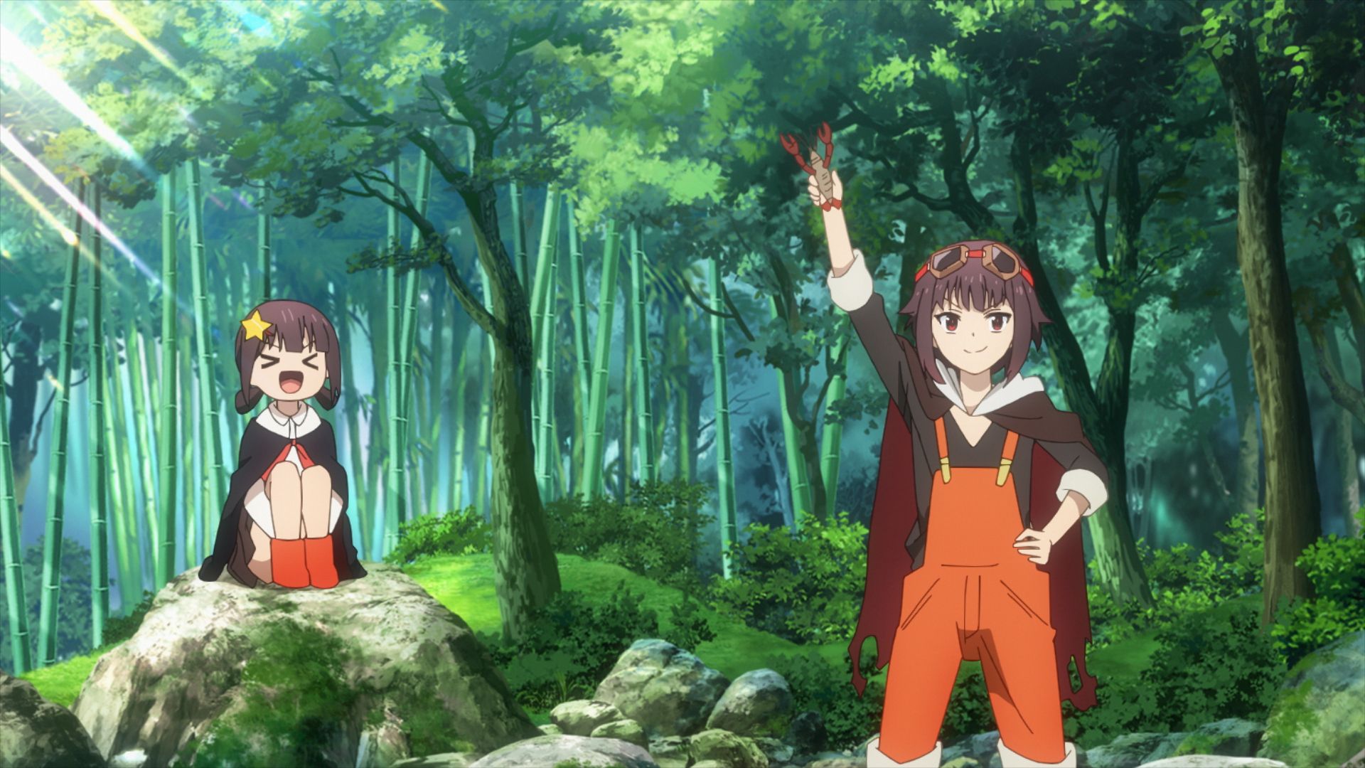 Part of this may be because this spin-off is still handled by some people who worked on Konosuba. Sure, the original Konosuba director Takaomi Kanasaki is not involved anymore (probably because he’s focusing on the Konosuba movie and season 3), but the animation director Koichi Kikuta is still there. He’s probably the one who’s responsible for defining the look and feel of the Konosuba series. Smears, weird poses, and expressive character movements are still apparent in this spin-off. The animation studio may also be different. But considering the industry’s reliance on outsourcing, having a different studio shouldn’t really affect the animation as long as it still has the same animators and animation directors.