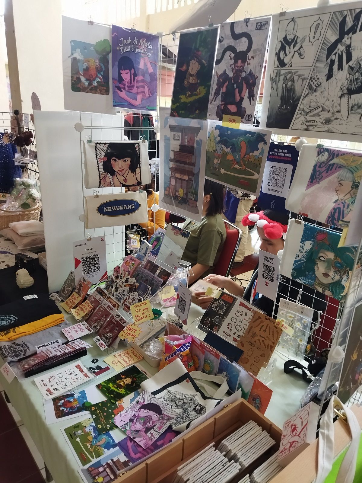 Moving inside, visitors would encounter various stalls serving drinks and food, and selling merchandises. Going further into the venue, there were local creators’ booths presented in collaboration with Pesta Komik Bandung (PesKom Banduung).