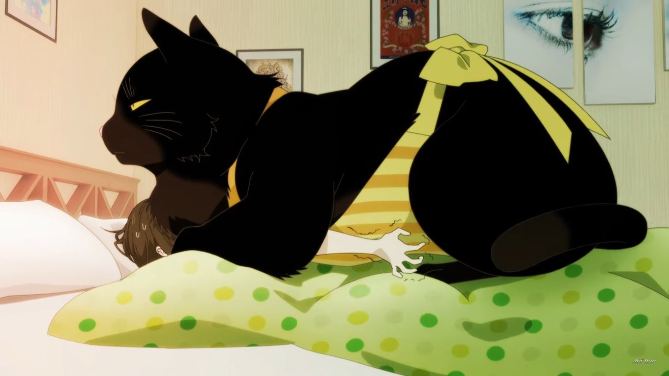 Dekineko anime starts by portraying Saku’s and Yukichi’s daily life from the time they wake up, and she goes to work, to the time they sleep. It’s set to introduce the characters and the situation surrounding them. When Saku picked up Yukichi from the street, she didn’t expect Yukichi to be the cat Yukichi is right now. The cat grew up to be masterful at housework and now helps Saku gets by in her busy everyday life. Given the circumstance of how they met, Yukichi’s masterful skills at housework can be interpreted through 恩返し (ongaeshi) meaning “returning the kindness”. And since Yukichi is a cat, it reminds me of Neko no Ongaeshi, just from the title only. But the concept of “animals” repaying kindness is a pretty common setting in anime and manga narratives. For example, an episode of Hoozuki no Reitetsu in its second season adapts the folklore Tsuru no Ongaeshi as the premise to show how Hoozuki deals with the situation. In Neko no Ongaeshi, Haru was offered a hand in marriage by a prince of the Cat Kingdom after saving him from being hit by a truck. Additionally, in Sewayaki Kitsune no Senko-san, Senko helped soothes Kuroto from the curse as her repayment for saving her life from a cursed nine-tailed fox.