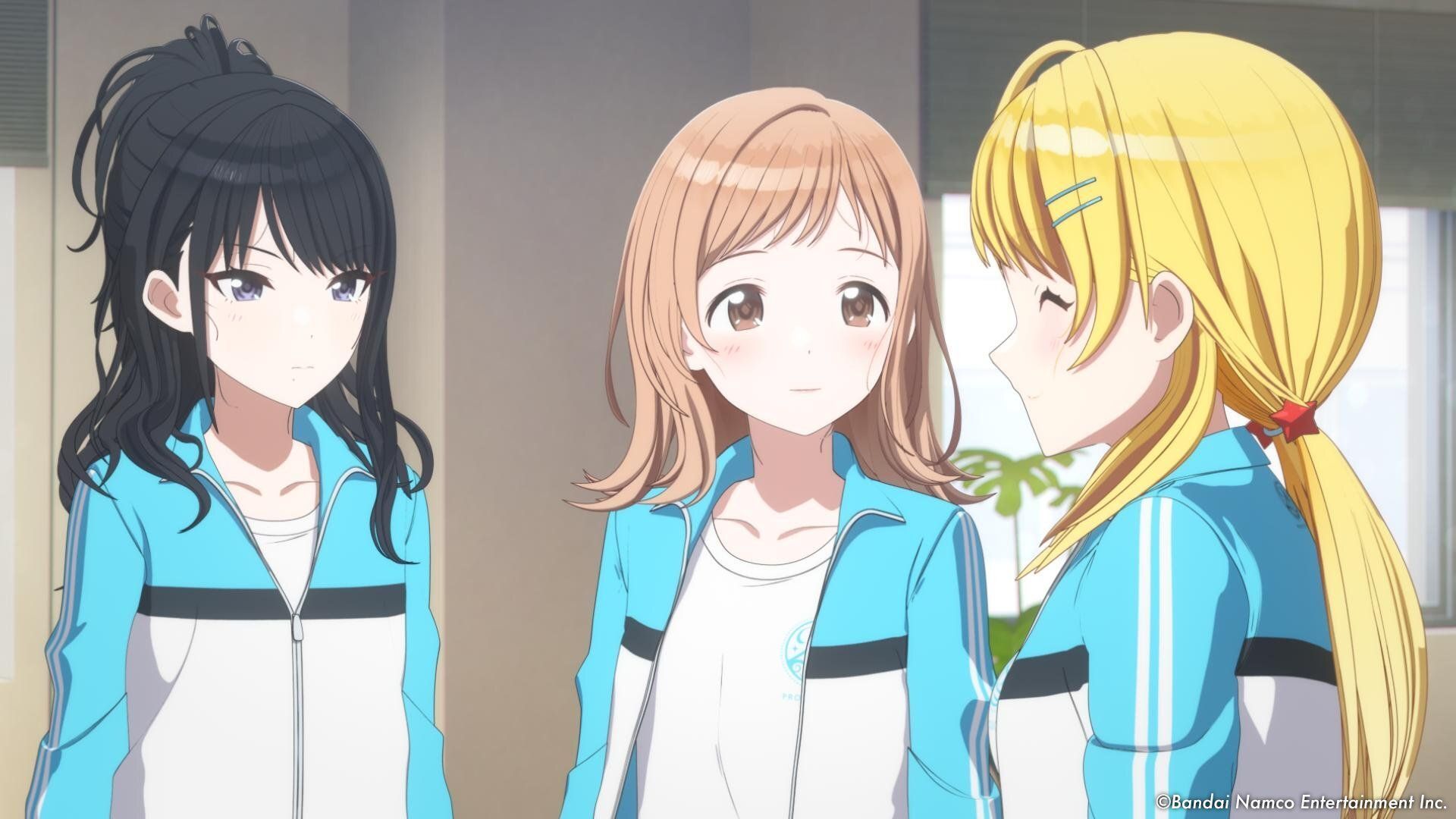 There is a sequence in the anime’s opening where they swap each character’s models while they do the same dance move in the center position. I get that this is supposed to show the idea that “every girl is special”, as it is one of the main themes throughout Shiny Colors‘ story, but due to the similar body types of the model and how all of the girls wear the same costume, it just looks like them swapping heads on the same body. It felt lifeless.