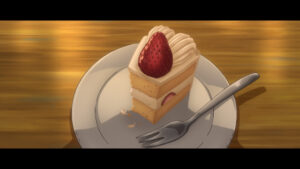 Coming from the writer of Hyouka, Shoshimin series is…interesting. It tells the story of two people: Jougorou Kobato and Yuki Osanai. Because of something that happened during middle school, they now aim to be ‘ordinary’. They don’t want to stand out and try their hardest to avoid being the center of attention. Kobato’s “extraordinary” traits in particular (ironically) stand out the most; he’s smart, tends to act like a know-it-all, and can’t help but “play detective” whenever he finds something that catches his interest. As far as episode two, there doesn’t seem to be anything out of the ordinary in Osanai, aside from the fact that she seems to be enjoying cakes a little bit too much.