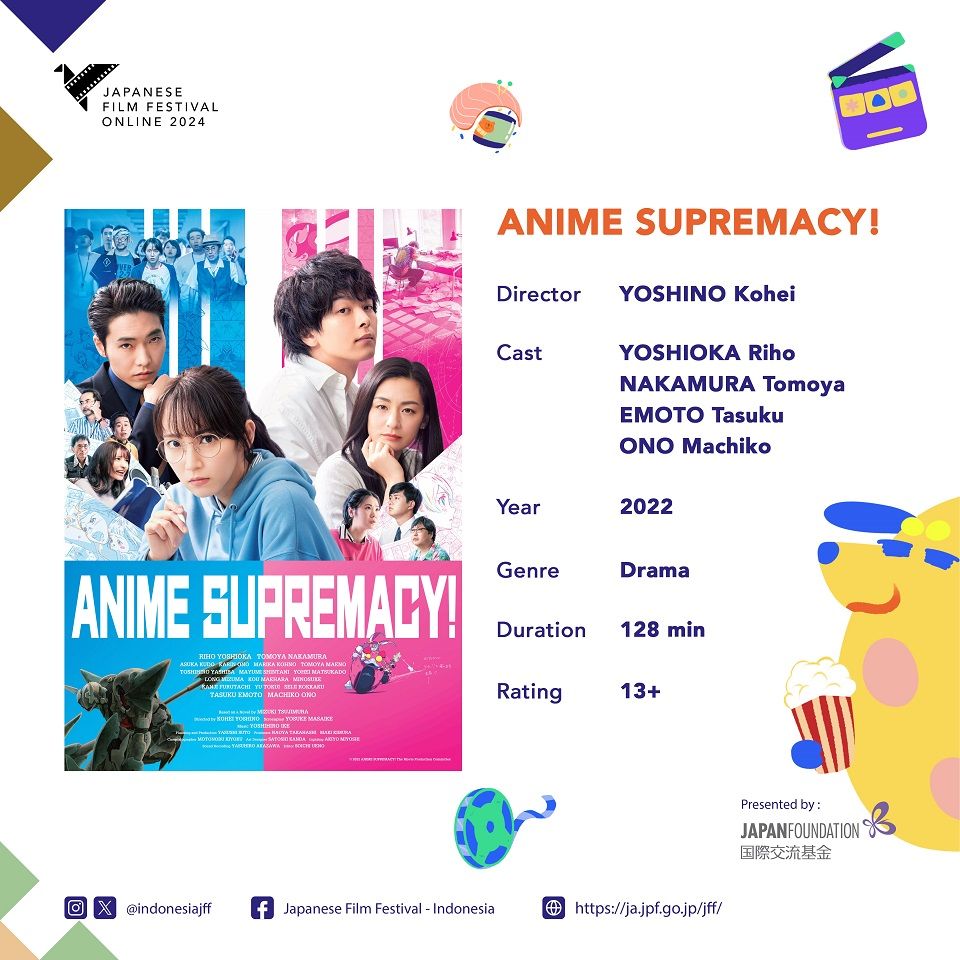 Anime Supremacy! is a film that tells the rivalry between two anime directors, Hitomi Saito (Riho Yoshioka) and Chiharu Oji (Tomoya Nakamura). Hitomi is a former office worker who quits her job after watching Chiharu’s anime. However, after she joins the industry, she becomes insecure about her job. She’s uncompromising. Because of this, she often clashes with her coworkers. She also has to deal with producer Satoru Yukishiro (Tasuku Emoto) who wants to market Hitomi’s anime aggressively. The nature of the anime industry weighs her a lot. This is her dream job, but now she has to face the reality of the industry.
