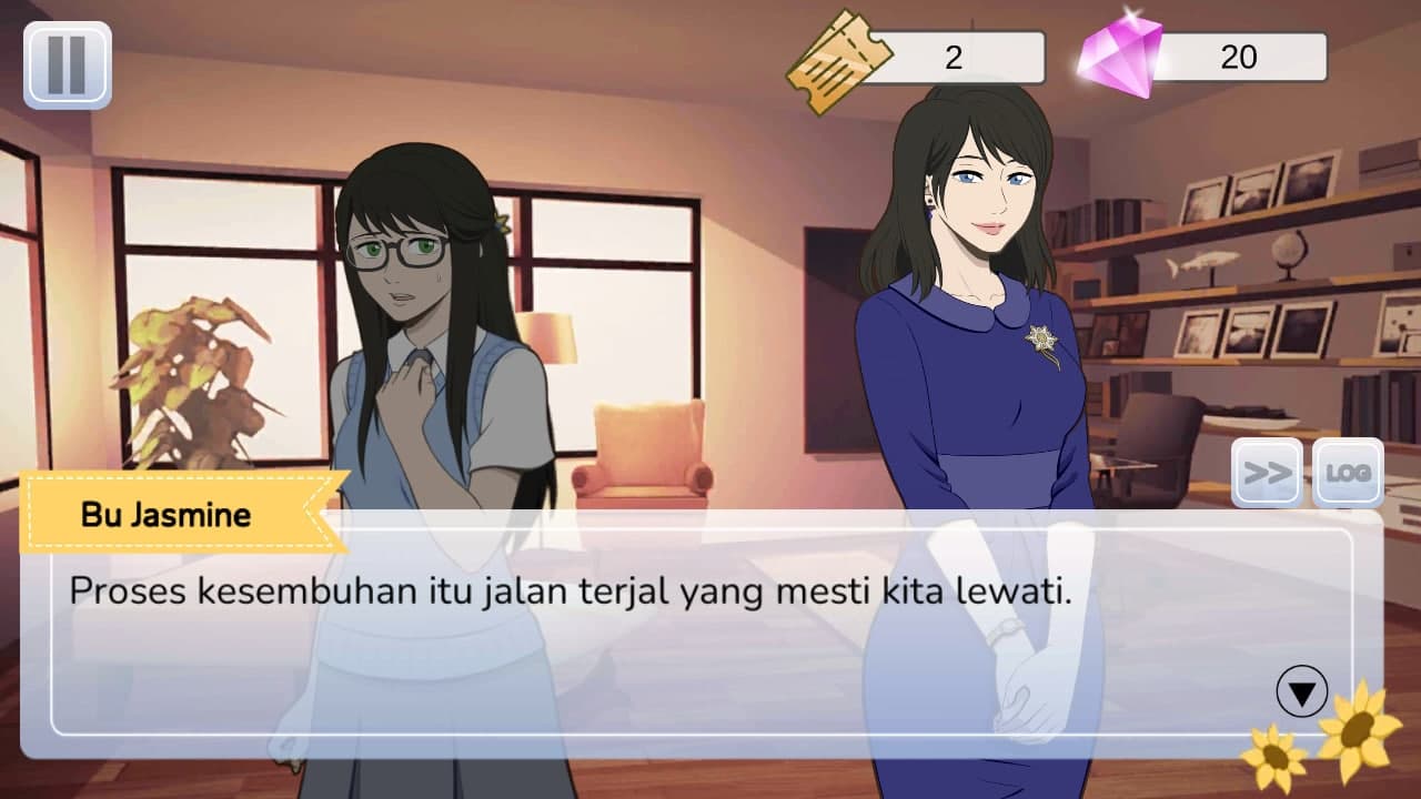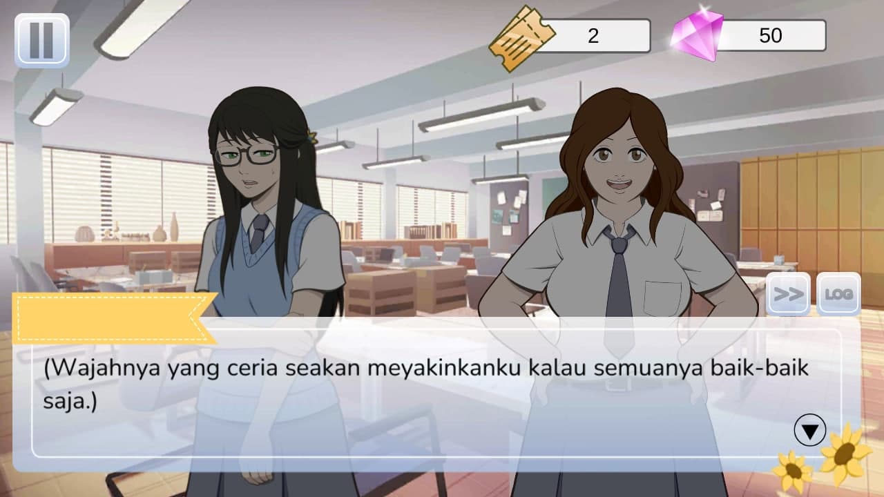 The Sun Shines Over Us is a visual novel that raises the issue of mental health and bullying at school. It focuses on Mentari, a victim of bullying who suffers from PTSD (post-traumatic stress disorder) and has to move school. In the new school, Mentari meets other unique teenage characters with their own personal problems. They all have different responses related to Mentari’s mental condition. Other mental health issues are also depicted in the game, such as ADHD (attention-deficit hyperactivity disorder), eating disorders, the impact of broken homes, and many others.