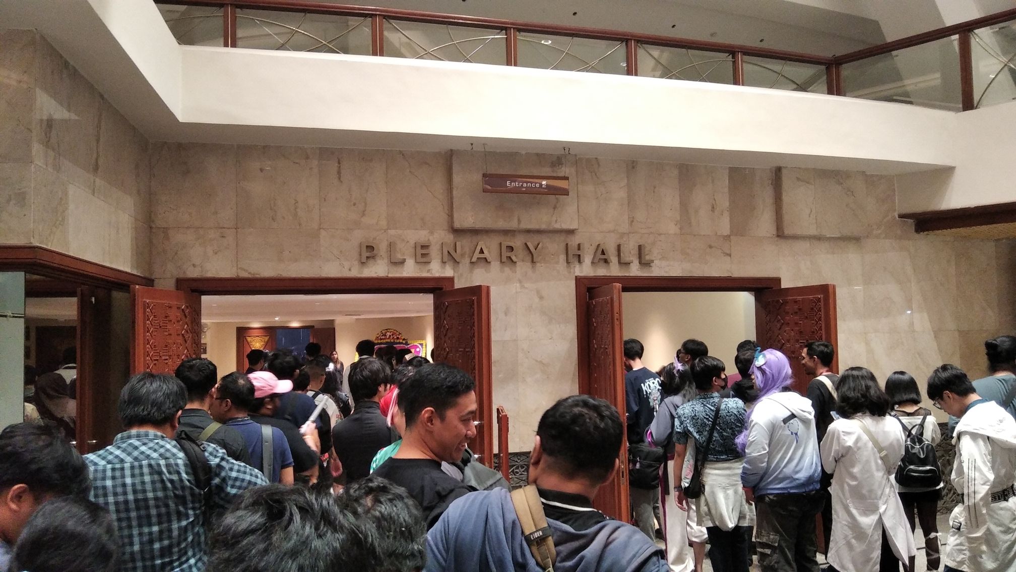 Originally, the venue was supposed to open according to the event schedule, which was 1700 WIT (Western Indonesian Times). However, by 1730 WIT, the venue had still not opened. Finally, I decided to go downstairs to do my maghrib prayer and go to the toilet. When I came back to the venue at 1815 WIT, the door was finally opened. It turned out that the venue doors were opened at 1800 WIT, one hour after its announced schedule.