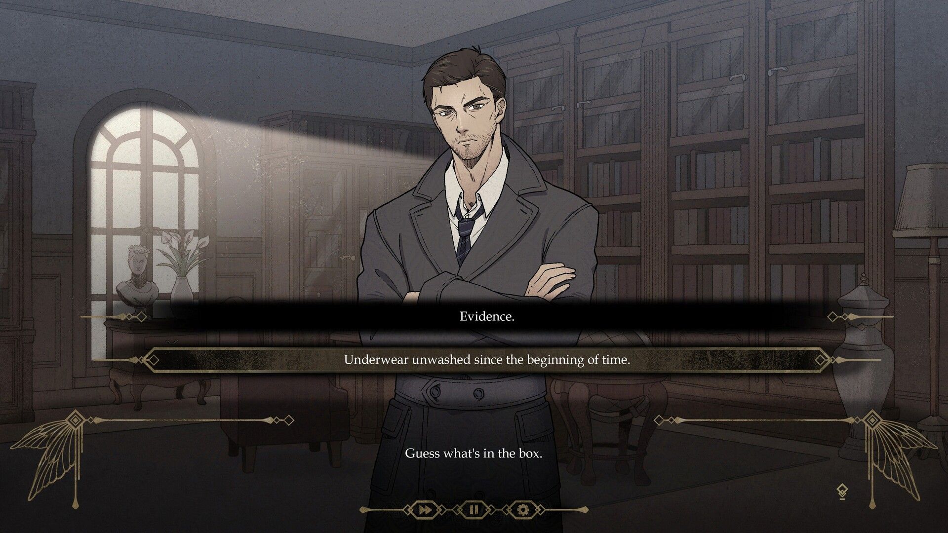 Drawing inspiration from acclaimed titles such as Strange Horticulture and the Ace Attorney series, the game combines a murder mystery game with mythological stories. The game also offers romance options and a story with multiple endings.