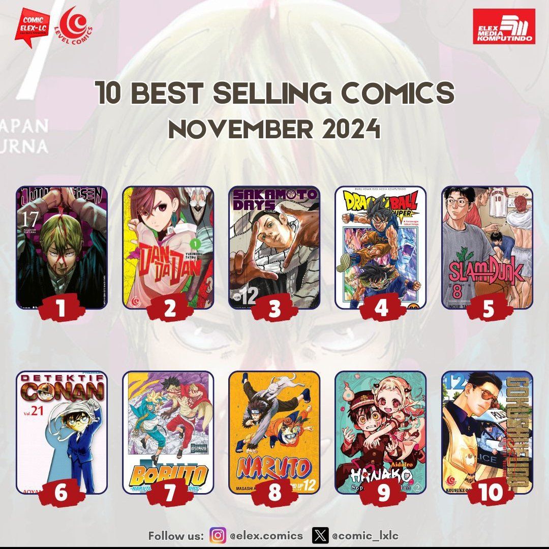 On Friday (6/12), the X (formerly Twitter account) of Elex Media’s comic editor posted a list of the publisher’s ten best-selling comic books in November 2024. Jujutsu Kaisen volume 17 takes first place, followed by DAN DA DAN volume 1 and Sakamoto Days volume 12 in the second and third place respectively.
