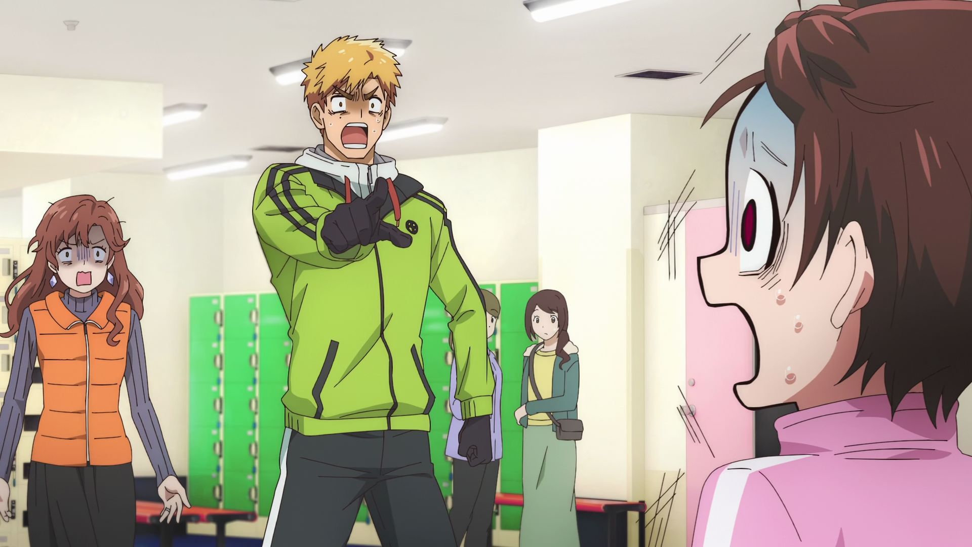 Medalist starts its first episode by showing us a glimpse of the 2D-3D mixed animation work used for the skating programs in this series. Skipping the opening sequence and immediately diving into the plot, we are then introduced to the leading characters and their hilarious first meet. One of my favorite aspects in the manga is the intense facial expressions when the characters undergo heavy emotions, and I think the anime portrays them in movement perfectly during comedic scenes like this.