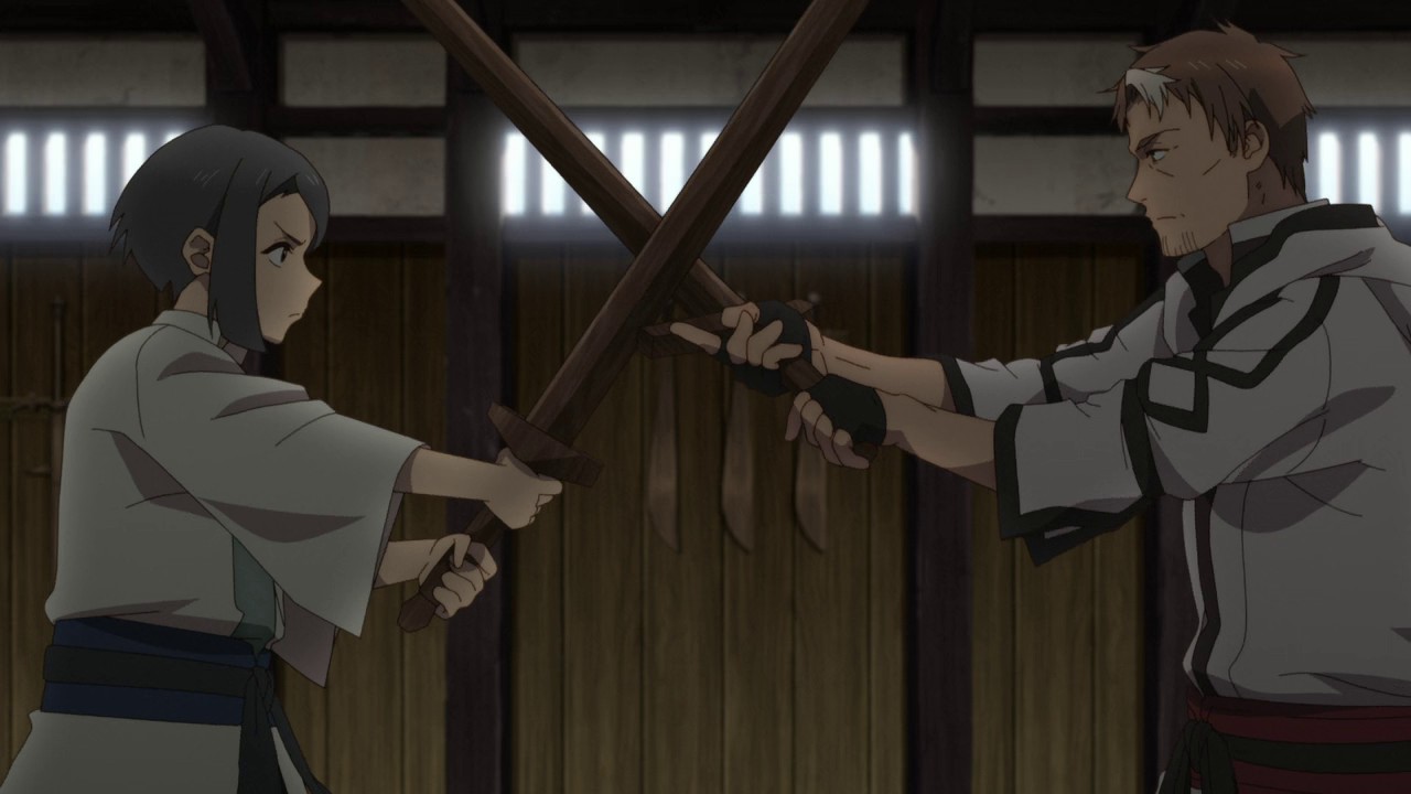 The animation keeps getting better when the anime shows the sword battle scene where the anime managed to balance out a good combination of 3D and 2D animation. Even if I don’t like 3D parts when they’re too noticeable, this anime managed to make sure that the 3D part was more there to support the complicated movement, which really feels like a solid animation because the transition between 3D and 2D is quite good. Same case with the visualization of the world, I must say this is really a good and livable fantasy world, it even looks like a good wallpaper that you can just use. The story, although it has a weird premise, seems like it might be a good one because the narrative doesn’t really feel like it’s being rushed, everything is being introduced slowly. Hence, seems like for me this will be another anime that I would really like to watch weekly.
