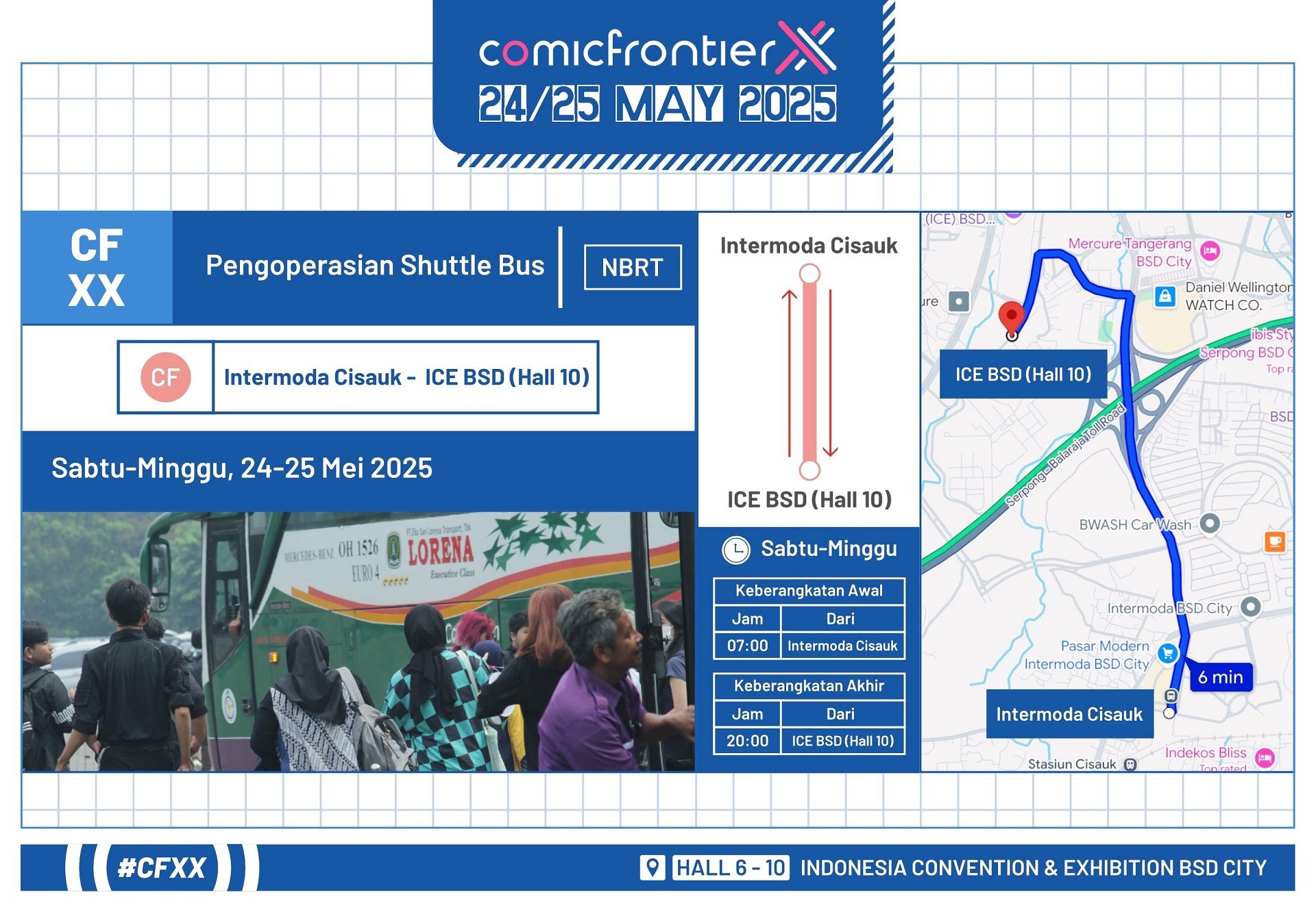 The event will also provide a shuttle bus service. The buses will operate hourly from 0700 to 2000 West Indonesian Time, connecting the Cisauk intermodal terminal and ICE BSD Hall 10.