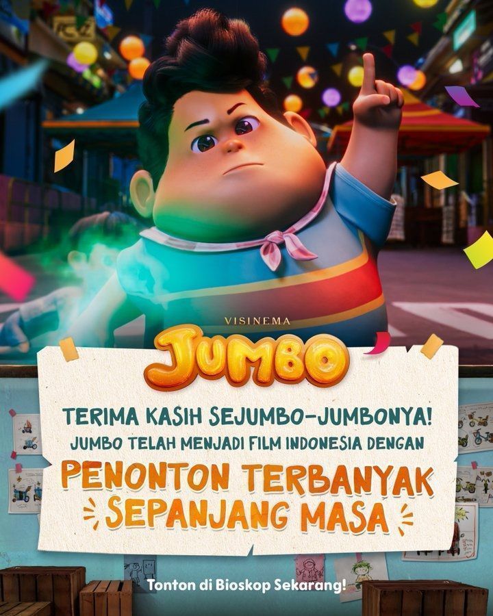 The Indonesian animated film Jumbo has officially become the most-watched Indonesian film in the history of Indonesian cinema. The film has surpassed the record previously held by KKN di Desa Penari (2022).