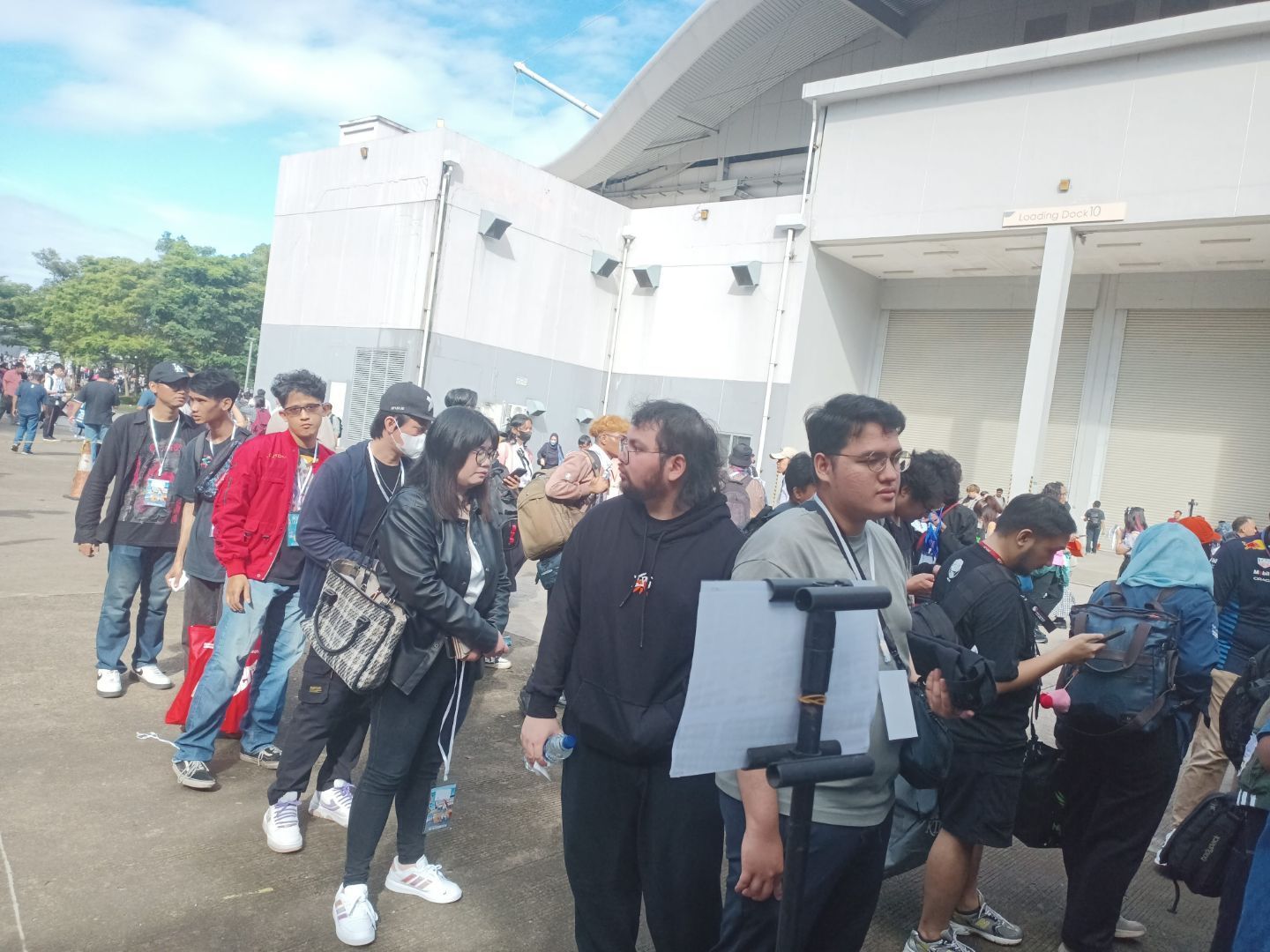 Visitors who had exchanged their tickets then lined up in front of Hall 10 at ICE BSD. Unlike previous events, the hallway in front of Hall 10 is now utilised as a waiting area for visitors who come early. It allowed visitors who had been queuing since dawn to wait inside the hallway without having to stand outside in the heat.