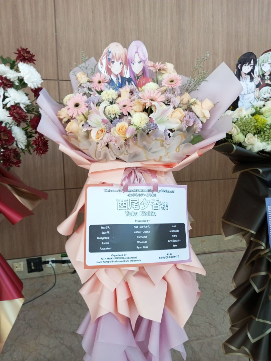 Visitors also enjoyed main-stage performances by special guest stars, including the BanG Dream! voice actress duo Yuzuki Watase (Who voiced Mutsumi Wakaba and Mortis in Ave Mujica) and Yuka Nishio (Who voiced Nanami Hiromachi in Morfonica). The event also featured a special appearance by Takaaki Kidani, the CEO of Bushiroad. To show appreciation for Bushiroad’s visit, Indonesian Bushiroad fans sent flower arrangements to the venue.