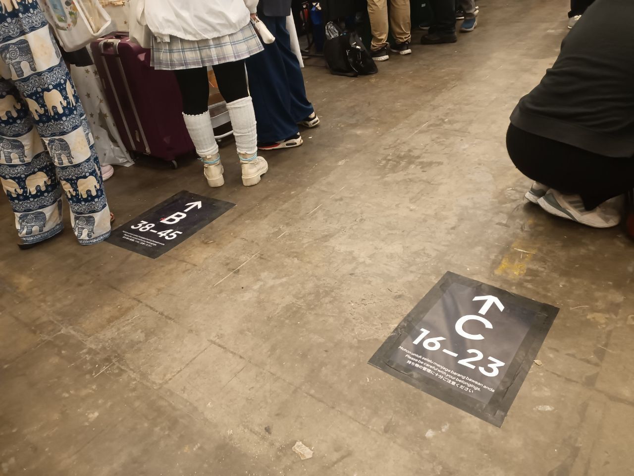 With over 1,300 circles offering a variety of goods, the booth circle area at Comifuro XX was even more crowded. To improve navigation, floor signage was added throughout ICE BSD. It helped the visitors locate their desired booth.