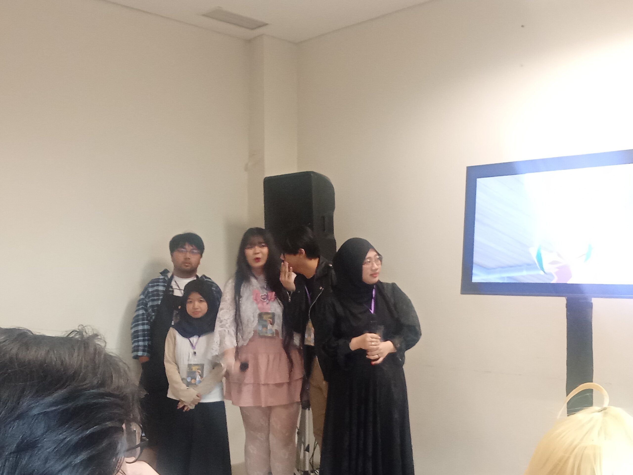 The workshop concluded with a Q&A session and a group photo with the speakers. Proceedings wrapped up at 1630 Western Indonesian Time. Overall, the workshop left a strong impression. Attendees gained valuable insight into the dubbing process and left with unforgettable experiences.
