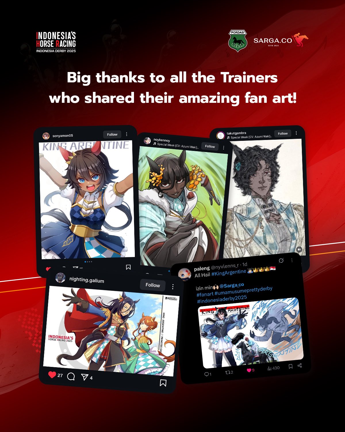 The game’s influence also extended beyond YouTube. Several Indonesian illustrators have shared their own Uma Musume-style characters based on the legendary local racehorses, including King Argentine, Princess Gavi, and Wonder Land. Sarga.co also shows their appreciation by engaging the creators on social media.