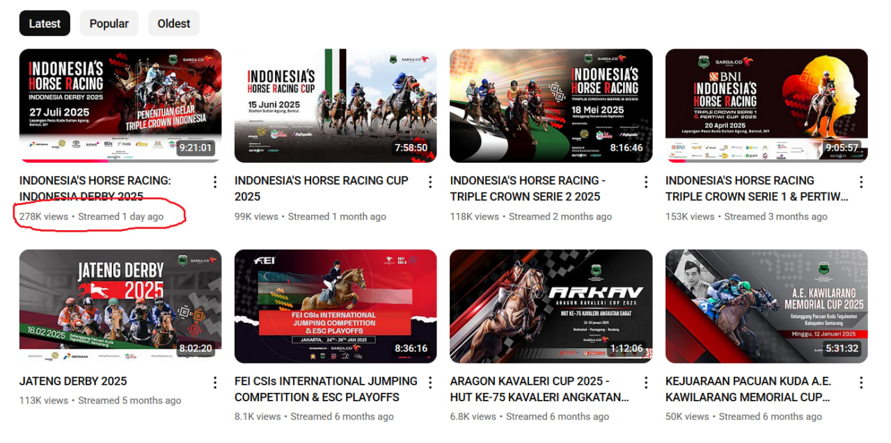 The example of this rise of popularity can be observed during the Indonesia Derby 2025 horse racing event. The event’s live stream attracted significant attention, reaching over 270,000 views on YouTube, making it the most-watched horse racing livestream on the channel. The comment section of the event was also flooded with game references such as “Umazing!”, “Indonesia’s Symboli Rudolf”, “Got hit by Go with the Flow skill,” and many more.