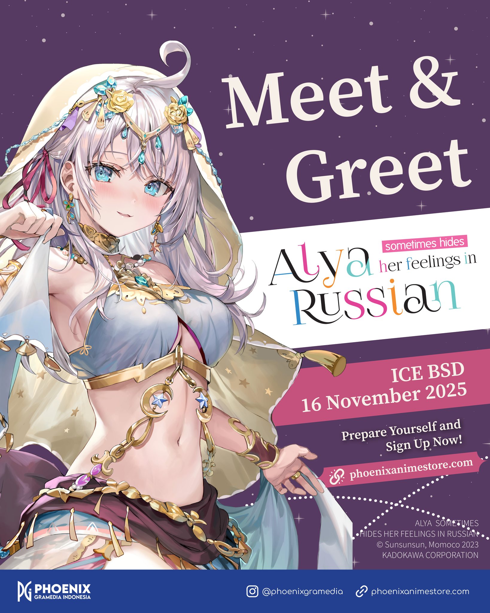 Phoenix Gramedia has officially confirmed that the upcoming Alya Sometimes Hides Her Feelings in Russian meet and greet will feature the light novel’s author SUNSUNSUN. The event will take place during Comic Frontier 21 at ICE BSD on 16 November 2025.