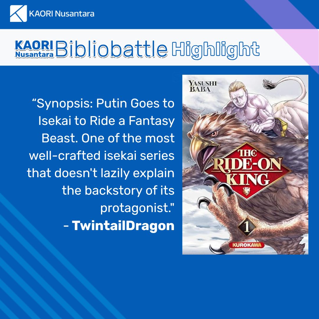 Another month for the KAORI Nusantara Bibliobattle! The fifth session of KAORI Nusantara Bibliobattle was held on 24 January 2026, in the usual place, the KAORI Nusantara Discord server. Still in the manga-themed recommendation session, the bibliobattle brought 7 participants, including 3 duelists.