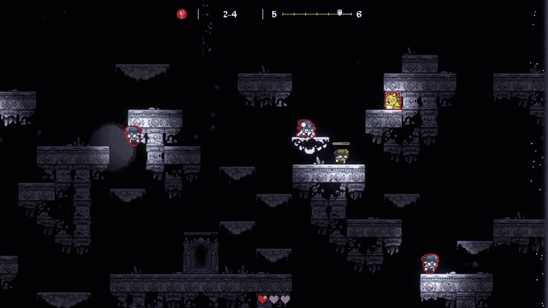 Before each run, the player has to select at least two preferred characters before entering a dungeon. However, a mystical system will randomly determine which one is used during each run, forcing the player to adapt. The run spans three distinct biomes, each offering unique mechanics and environmental challenges.
