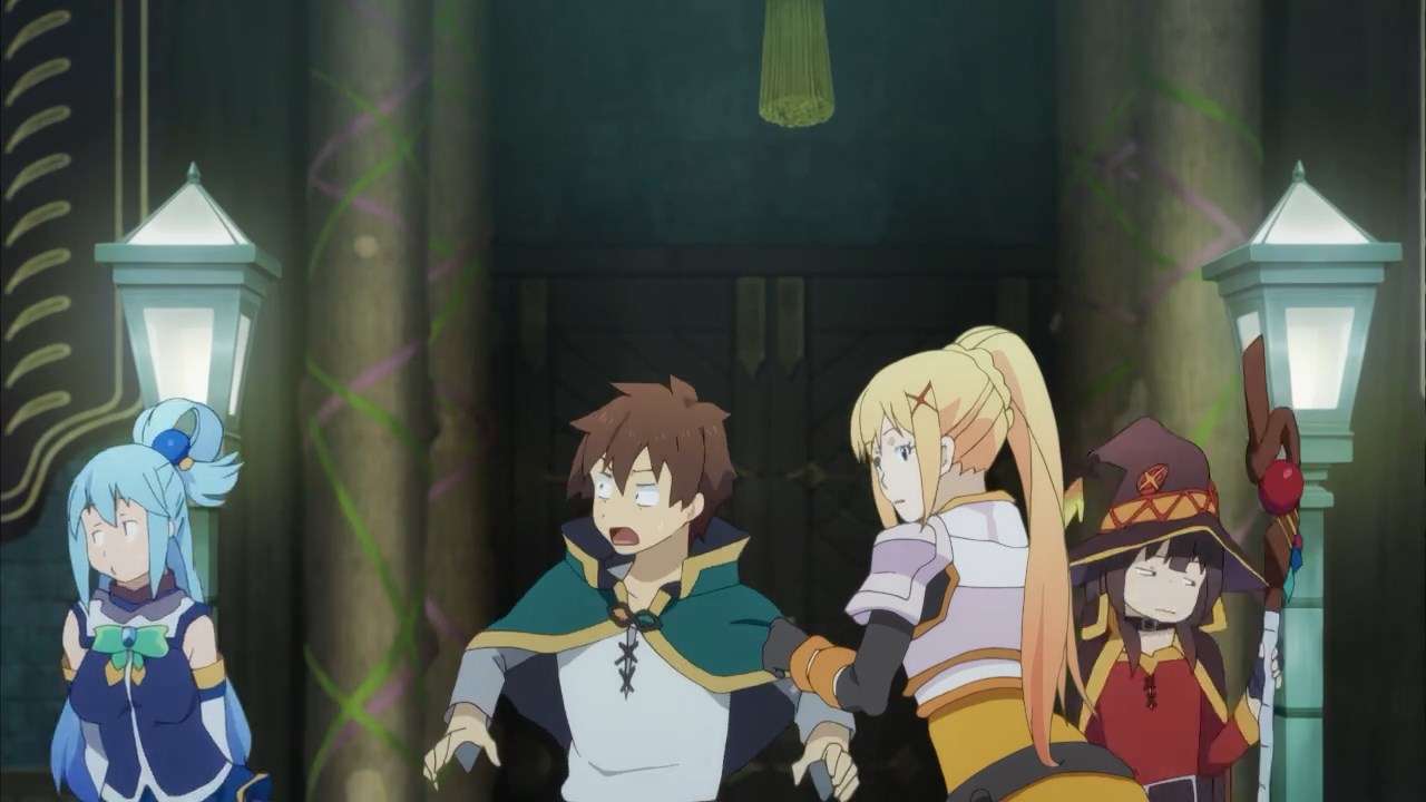 After succeed with defeating the Mobile Fortress Destroyer, KAzuma Satou and his party, Aqua, Darkness, and Megumin were claimed as the saviors of the town. But their heroic days were over in an instant when suddenly some people from royal court came to imprison Kazuma because of what they did, teleporting the explosive device to a Lord’s house, he was suspected of the crime of subversion to the state. Hence Kazuma’s daily life in prison began while he waited for his judgment to come.