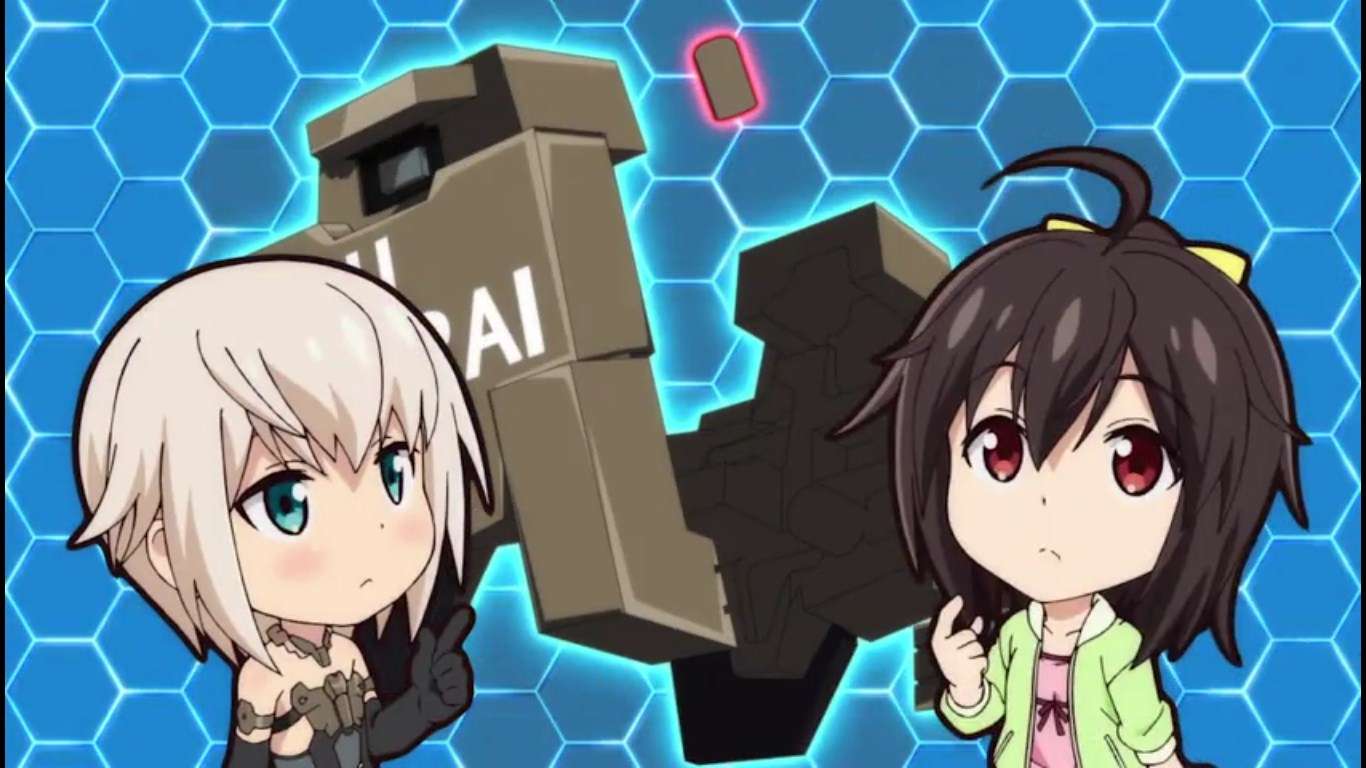 In the anime, a girl named Ao found a package on her doorstep containing Gourai, a small robot Frame Arms Girl that can move on its own. Gourai is a newly developed prototype of Frame Arms Girl with “Artificial Self” which gives it personality. When the feature had been activated, Gourai began to collect various data and started life with Ao who does not understand anything about Frame Arms Girls.