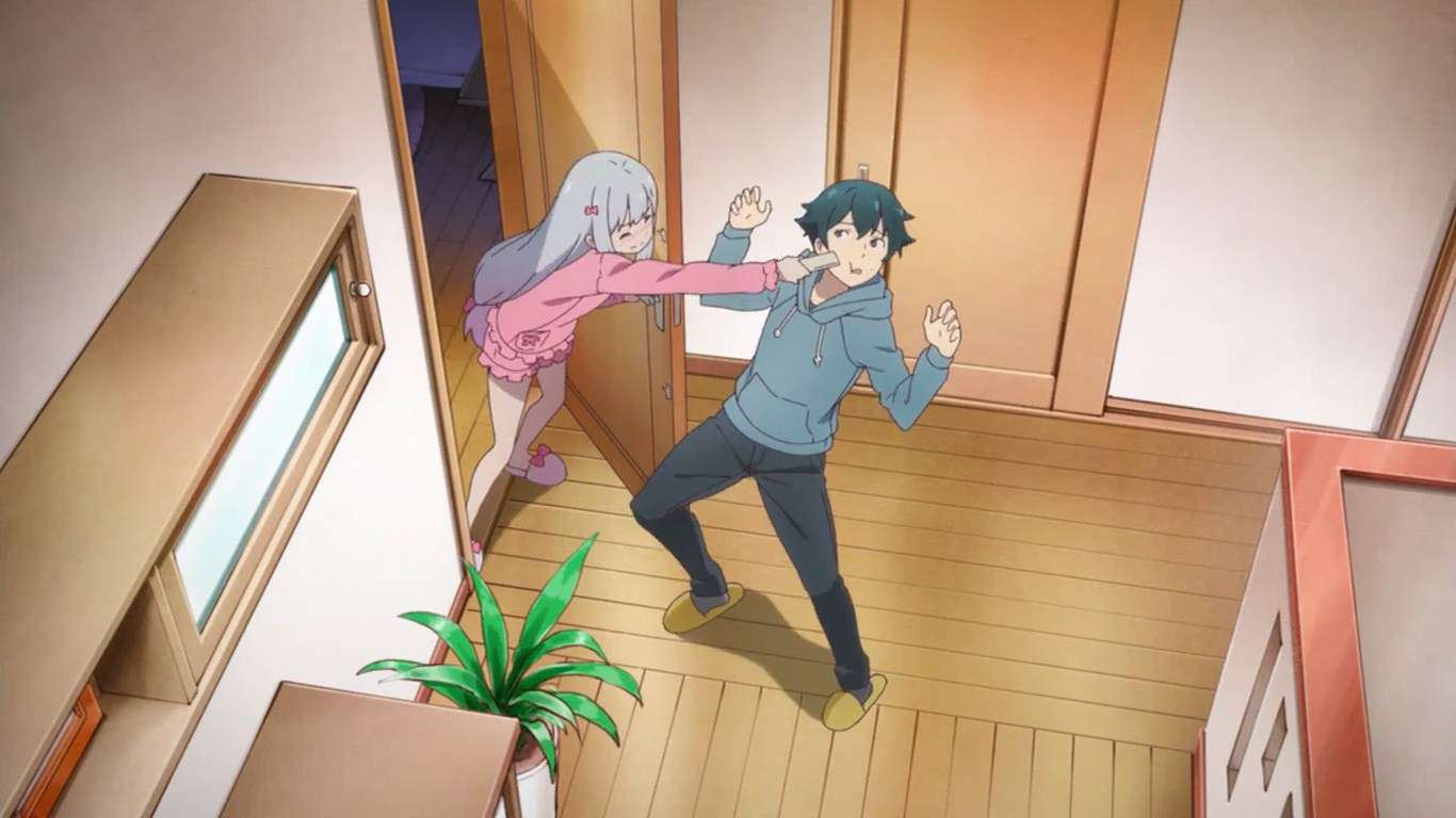 Eromanga Sensei is one of the most eagerly awaited light novel adaptations by light novel fans. Without much ado, the first episode introduces the main characters Masamune and Sagiri Izumi. Some of the supporting characters like Masamune’s schoolmate Tomoe Takasago, Sagiri’s classmate Megumi Jinno, also appear at the end of the episode. Eromanga Sensei seems to be a good choice for fans of little sister heroines.
