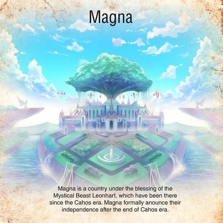 Magica system is a power given by the Mystical Beast Leonahart. This includes three different types of Magic. The first is Summon to call a mystical beast to help in battles. The second is Enchantee to increase physical power. The last is Artes, which is control of the four elements.