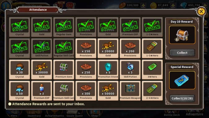 Each day, there will be Daily Rewards for Logging In. This system will be reshuffled after each 28 days, where in the last day, players​ can collect a special Scroll which will give a Hero character with 4-star Rarity. Many bonuses and items can also be bought with in-game microtransactions, with up to 40% discount.