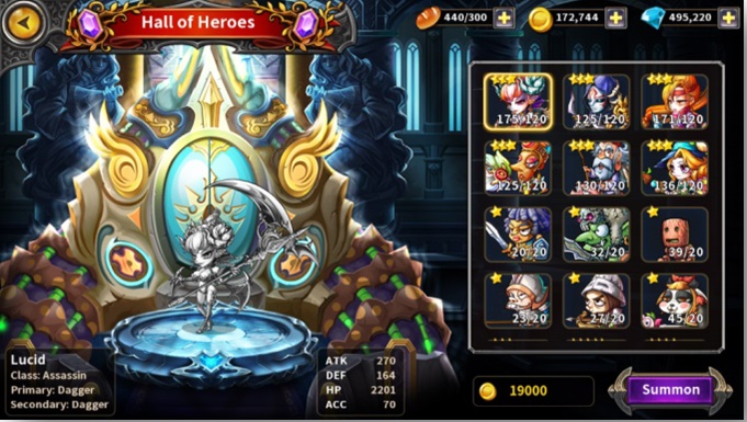 To obtain a Hero, player can collect Soulstone to be used for Hero Summon. Other than that, Soulstone can be used for Upgrades, Awakening, and to strengthen the Heroes.