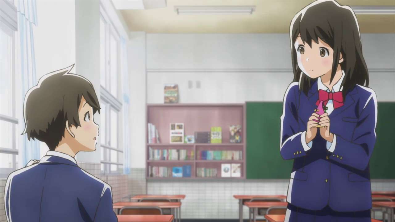 This anime also represents how people act in school, where nobody is actually a moe anime girl. This aspect adds more realism to it. Nobody is actually super pretty or handsome or cute or strong. Everyone is basic like a normal human being. They talk to each other, using the mainstream line ‘We can still be friends, right?’ after their graduation. Even though they will still get separated, and lost contact eventually.