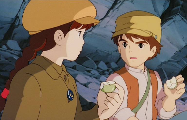 Lamarre also argued that Miyazaki tends to avoid romantic resolution between his male and female main characters, to avoid making his female character a ‘prize’ for his male character. Miyazaki rather stressed the depiction of relationship between his male and female main characters “as friends, partner, or allies.” At least in Castle in the Sky, this is accomplished by giving the same weight to Sheeta’s journey to salvation with Pazu’s adventure. Sheeta does not end up as a ‘prize’ for Pazu, as it is not Pazu alone who saved the world like typical male heroes. It was Sheeta who provide salvation with Pazu’s help.