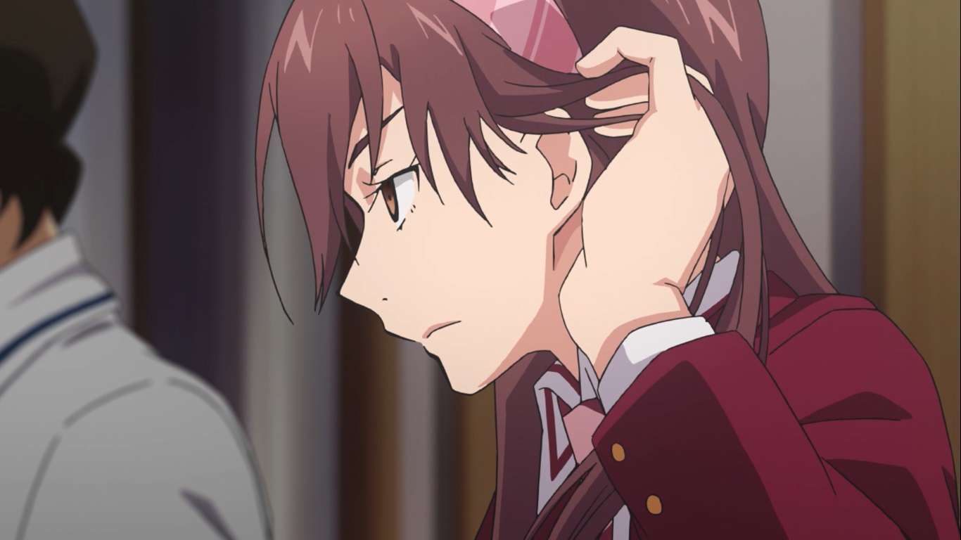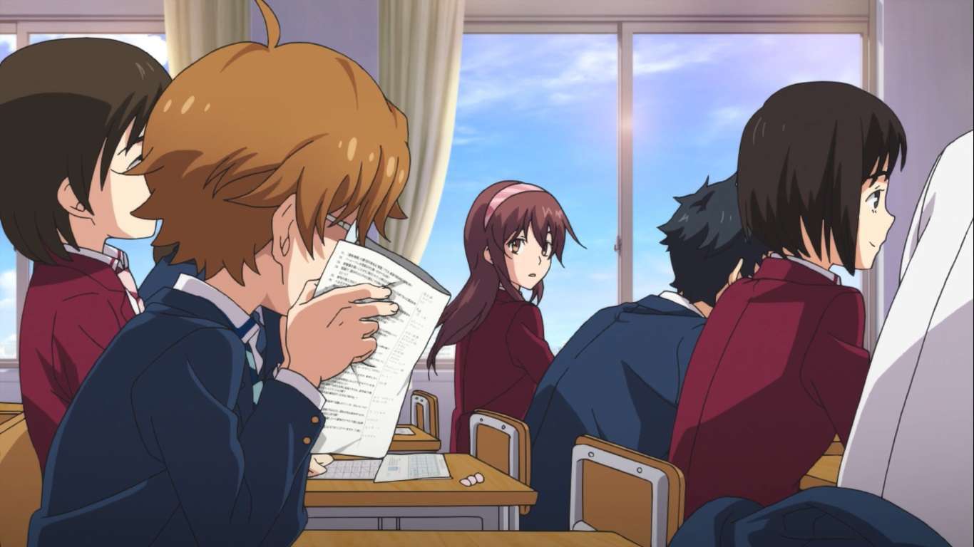Nana Maru San Batsu has an alternative name 7O3X, which literally means 7 right and 3 wrong. A nice title for a quiz-themed anime. It seems to become a usual thing and even compulsory in the anime scenario to start the story by confronting two character with mildly sexualized scene, something like a bump with each other at the school hall, panties, getting caught at peeping the girl accidentally and etc. Shiki accidentally saw Fukami’s panties and then fortunately he is forgiven by her due to showing his ability in quiz competition before, in a session of club demonstration. Much like Onoda in Yowamushi Pedal, at first, who was just who used to pedal his bike on long trips to Akibahara before getting pulled to put his skills in competitive cycling, Shiki has a high interest in reading and has become librarian, so it’s not hard to find the answer for trivia questions for him.