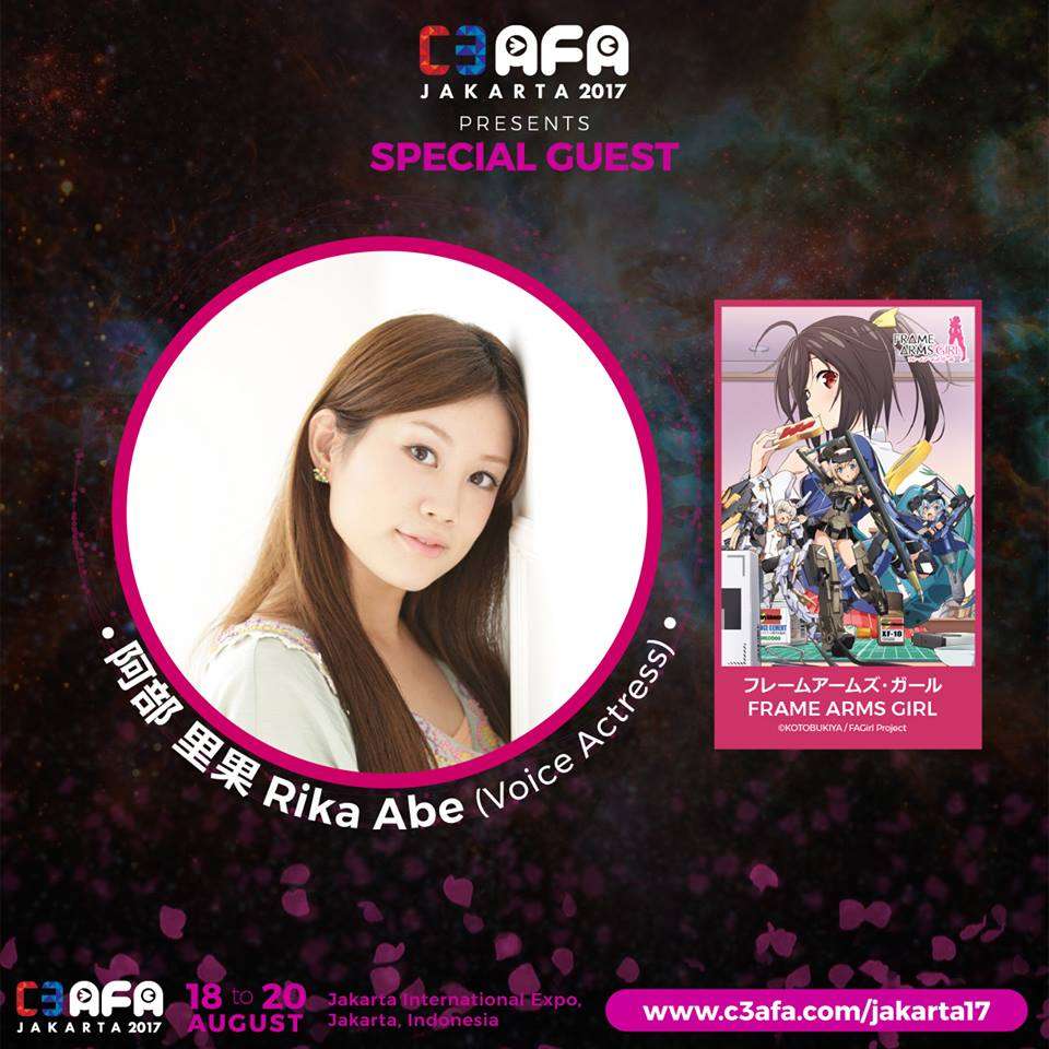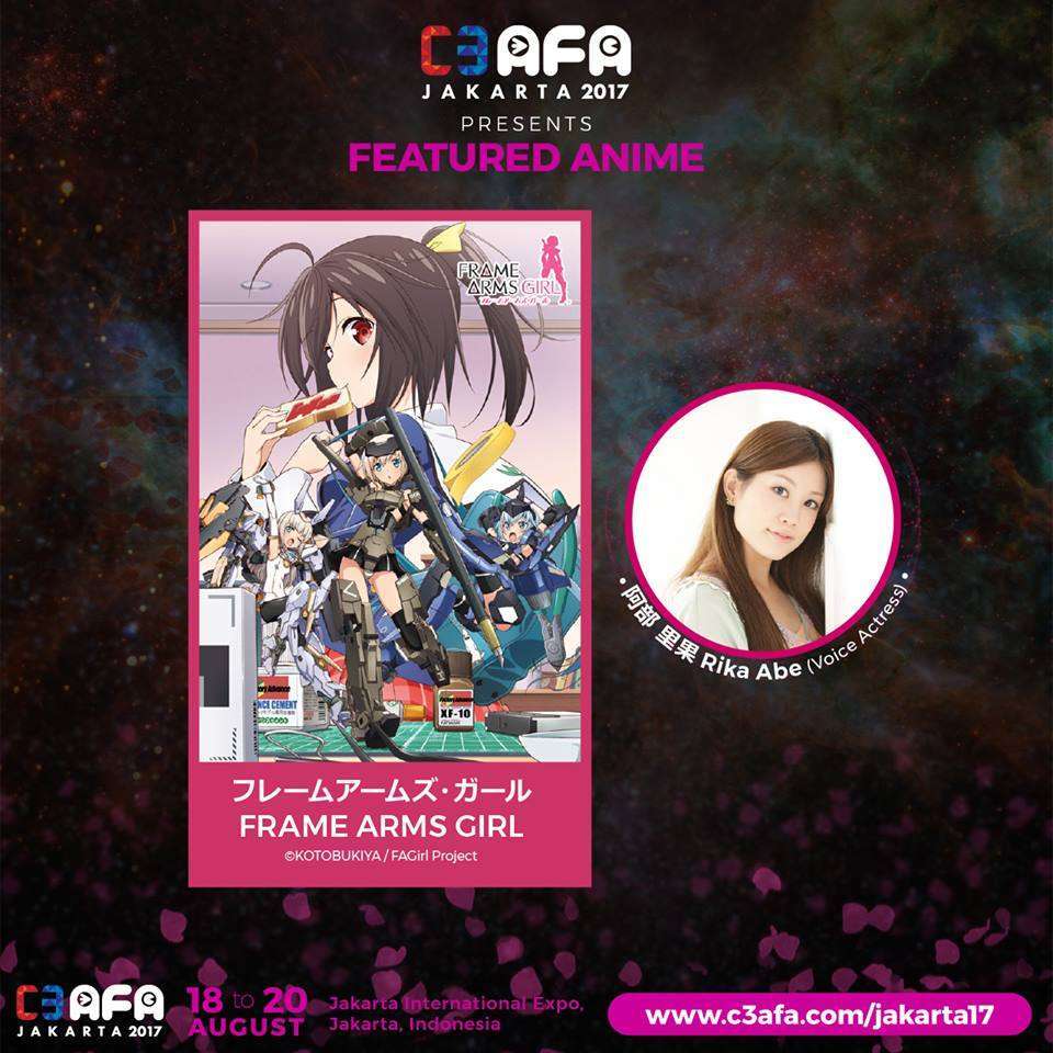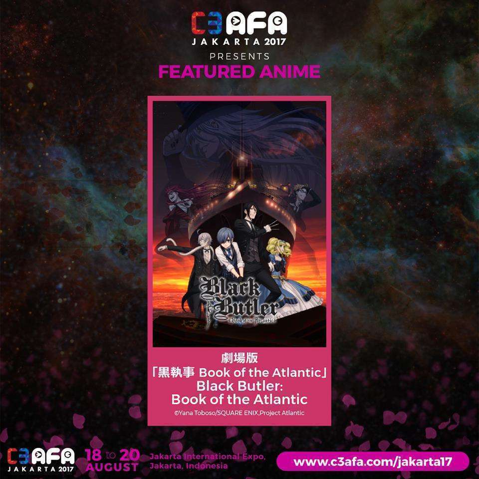 The two featured anime are Black Butler: Book of the Atlantic and Frame Arms Girl, while the special screening is for HATSUNE MIKU EXPO 2016 Japan Tour. Additionally, for Frame Arms Girl, C3 AFA will also feature Rika Abe, who voices the character Hresvelgr in the anime.