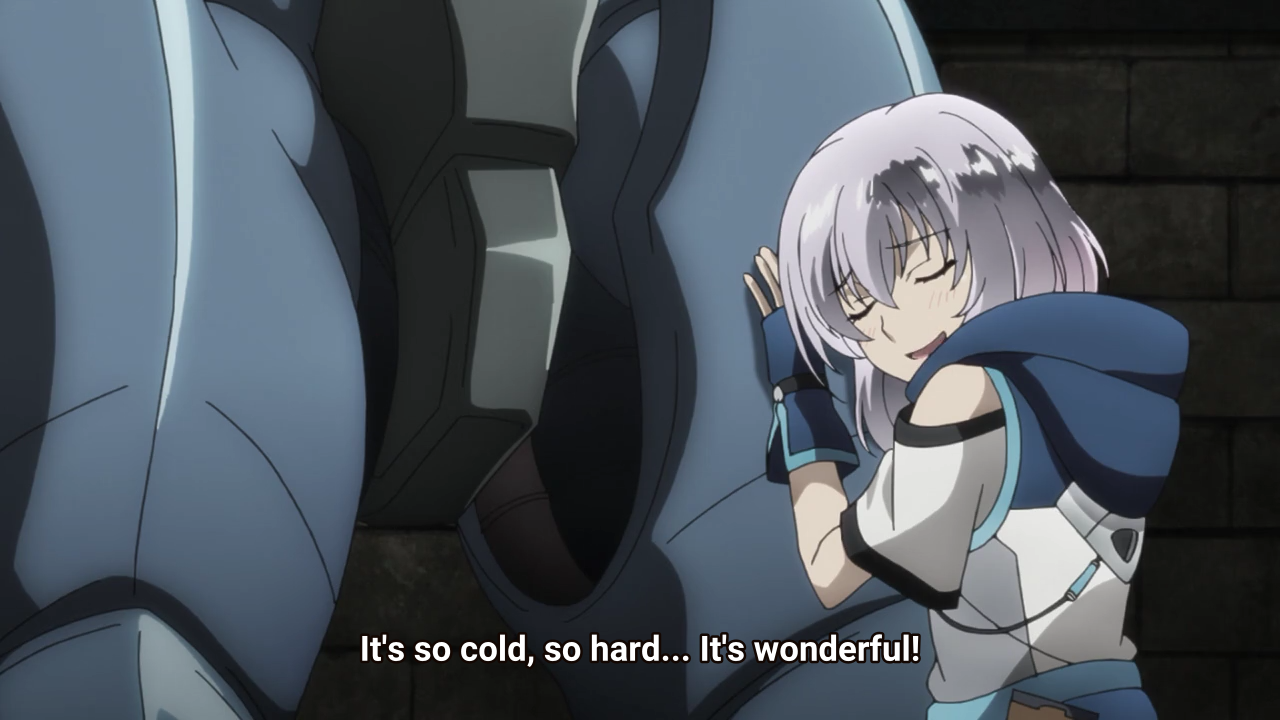 But aside from that, Ernesti actually also shows affective responses to the silhouette knights. He refers to them as “partners” (aibou), treat the completion of a silhouette knight’s construction as its birthday, and quite often displays his excitement for silhouette knights with expressions that pretty much make him look like he’s horny. An artist on pixiv even joked that the heroines of Knight’s & Magic are actually the silhouette knights!