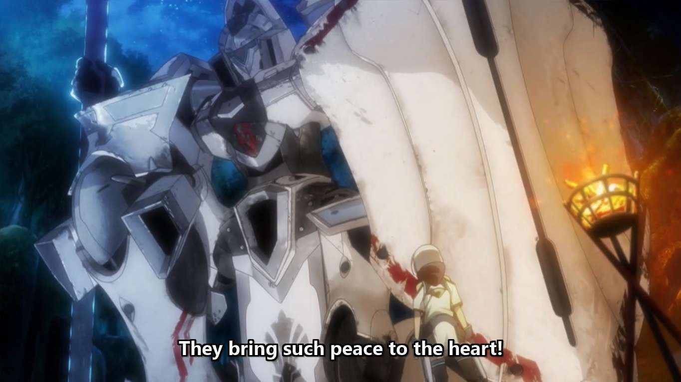 Perhaps it’s also only fitting that Ernesti, as the main character, is designed as an androgynous young boy (shota), with voice actress Rie Takahashi giving a splendid performance in voicing his spirited speeches of his ideals with the voice of an over-excited young boy. Not only it accentuates Ernesti’s blurring of mechanical/”masculine” and affective/”feminine” modes of response when it comes to giant robots; it also highlights how, despite Ernesti’s own assertion that giant robots are “a man’s romance (otoko no roman),” the obsession for giant robots is really, actually, childhood dream. But that doesn’t make the dream any less valuable.
