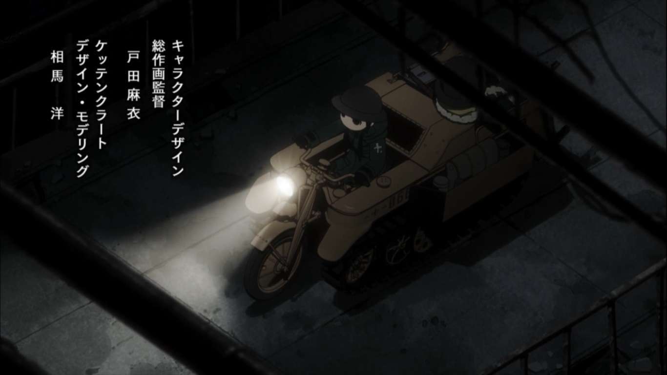 The anime is produced by White Fox studio, which also handles popular anime adaptation such as Re:Zero and Steins; Gate, which is one of the main draw for me to watch it. In addition, Inori Minase also plays one of the main characters (Chito) in this anime. At the start of the first episode, Chito and Yuuri are shown driving a Kettenkrad, a motor-like vehicle that has an auxiliary module with a wagon and treads like those used in tanks.