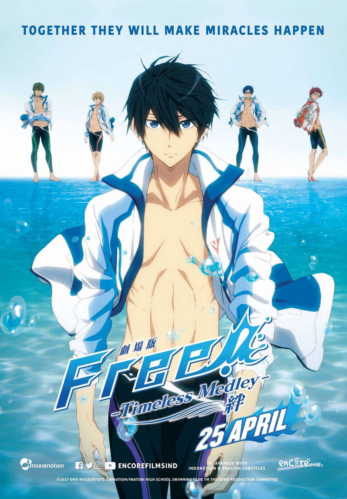 As previously reported, Encore Films Indonesia has planned to bring Free! – Timeless Medley and Free! Take Your Marks anime films to Indonesia. On Thursday (15/3), Encore Films Indonesia has revealed through their social media accounts on Facebook and Twitter, the release date of the first Free! Timeless Medley film in Indonesia. Free! – Timeless Medley – The Bond is set to release on 25 April 2018. Further information about which cinema chains will screen the film has yet to be revealed.