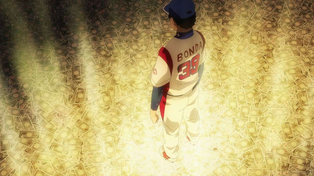 Gurazeni: Money Pitch is different than most baseball anime. You could even argue that Gurazeni is a “baseball anime without baseball”, and that’s because of Natsunosuke Bonda’s drive in the team: to get paid even more. In Gurazeni, money is everything. If you play well in matches, you get a huge sum of money. That is how professional baseball team Spiders work, and this is what led Natsunosuke to gain his uncanny skill where he can measure his competitors’ skills by comparing their salary to his own (18 million yen per year).