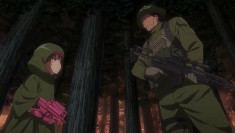 Then, what happens when an SAO series comes without Kirito, Asuna, and co.? Alternative GGO anime presents the universe of one of its game worlds, Gun Gale Online, through its main characters, Llenn, and through Squad Jam tournament. This episode manages to present an exciting firefight (as well as a few details that can satisfy military otaku) with a distinctive sensation like playing real Battle Royale games. It feels so interesting to see the duet of M (a calculating and patient sniper) and Llenn (an agile player with “P90 RUSH B” spirit) who have the opposite characteristics having good chemistry in this episode.